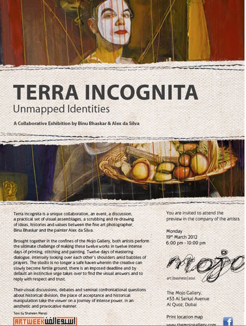 TERRA INCOGNITA é uma exposição de Binu Bhaskar (India/ Australia/ Emirados Árabes Unidos) e Alex da Silva (Cabo Verde) na galeria Mojo no Dubai. Estes dois artistas conheceram-se no Home and Abroad, workshop internacional organizado pela Xerem e desde então vêm colaborando.