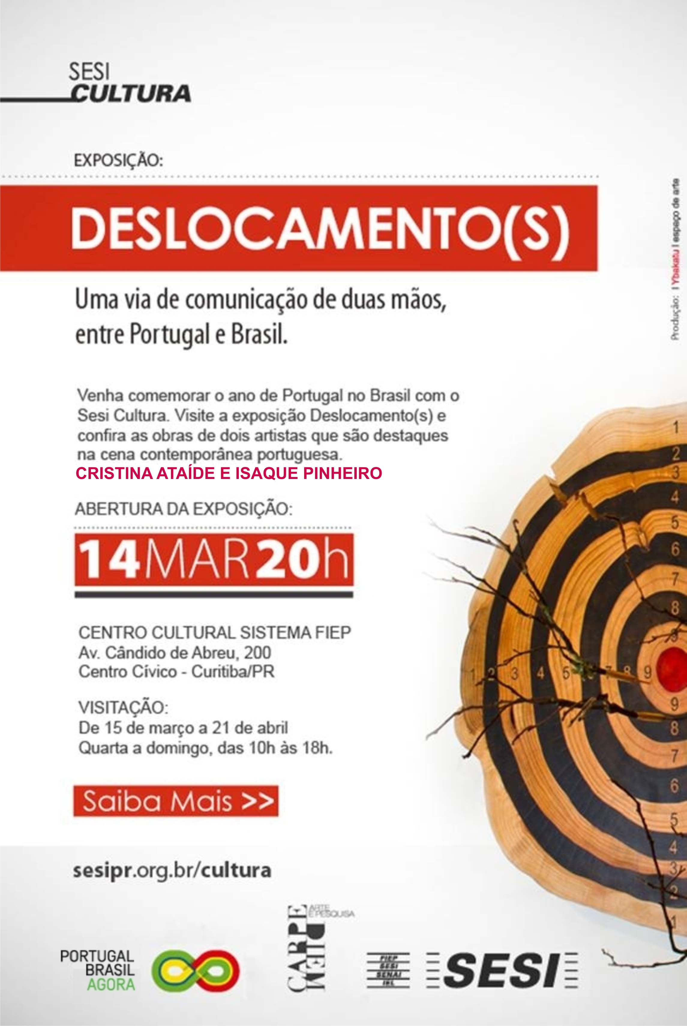 A artista Cristina Ataíde, membro da XEREM apresenta-se em Curitiba/Brasil na exposição Deslocamento(s) em conjunto com o artista Isaque Pinheiro. A exposição decorre no Centro Cultural do Sistema Fiep e integra a programação do Ano de Portugal no Brasil.